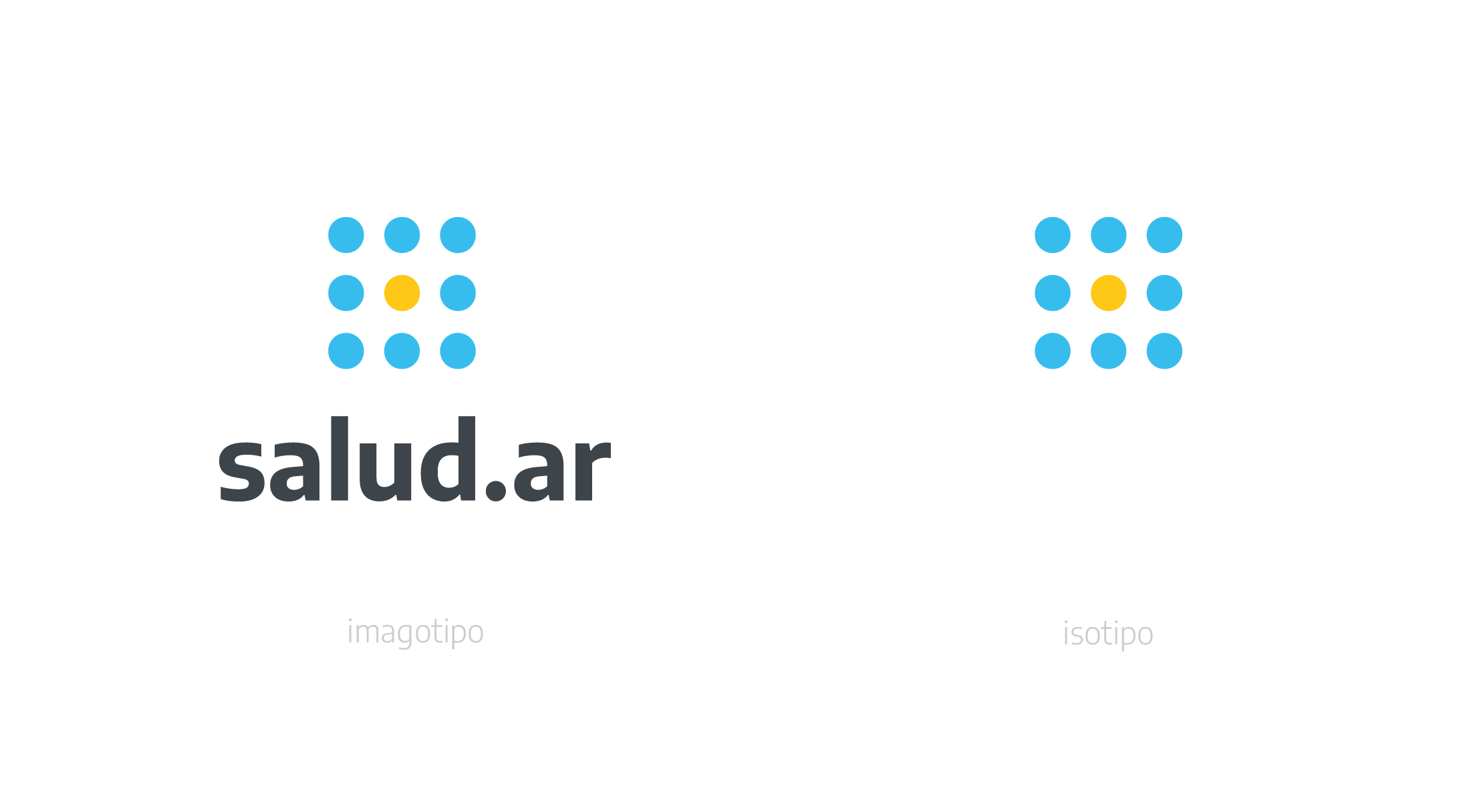 Por jerarquía de contraste se resalta la palabra que identifica a la marca, “salud”, como el concepto más relevante y universal que debe poder contar el área de desarrollo del producto. Luego la inclusión del punto ar trabaja en dos niveles distintos. El primero, referenciando a la bandera argentina mediante la codificación de sus colores que completan la totalidad de la composición y la acercan a la identidad nacional. El segundo, conectando el estereotipo de la puntuación seguida de la nomenclatura del país como elemento necesario en el lenguaje propio de internet, denotando así la existencia de una estructura informática profundamente relacionada al programa.